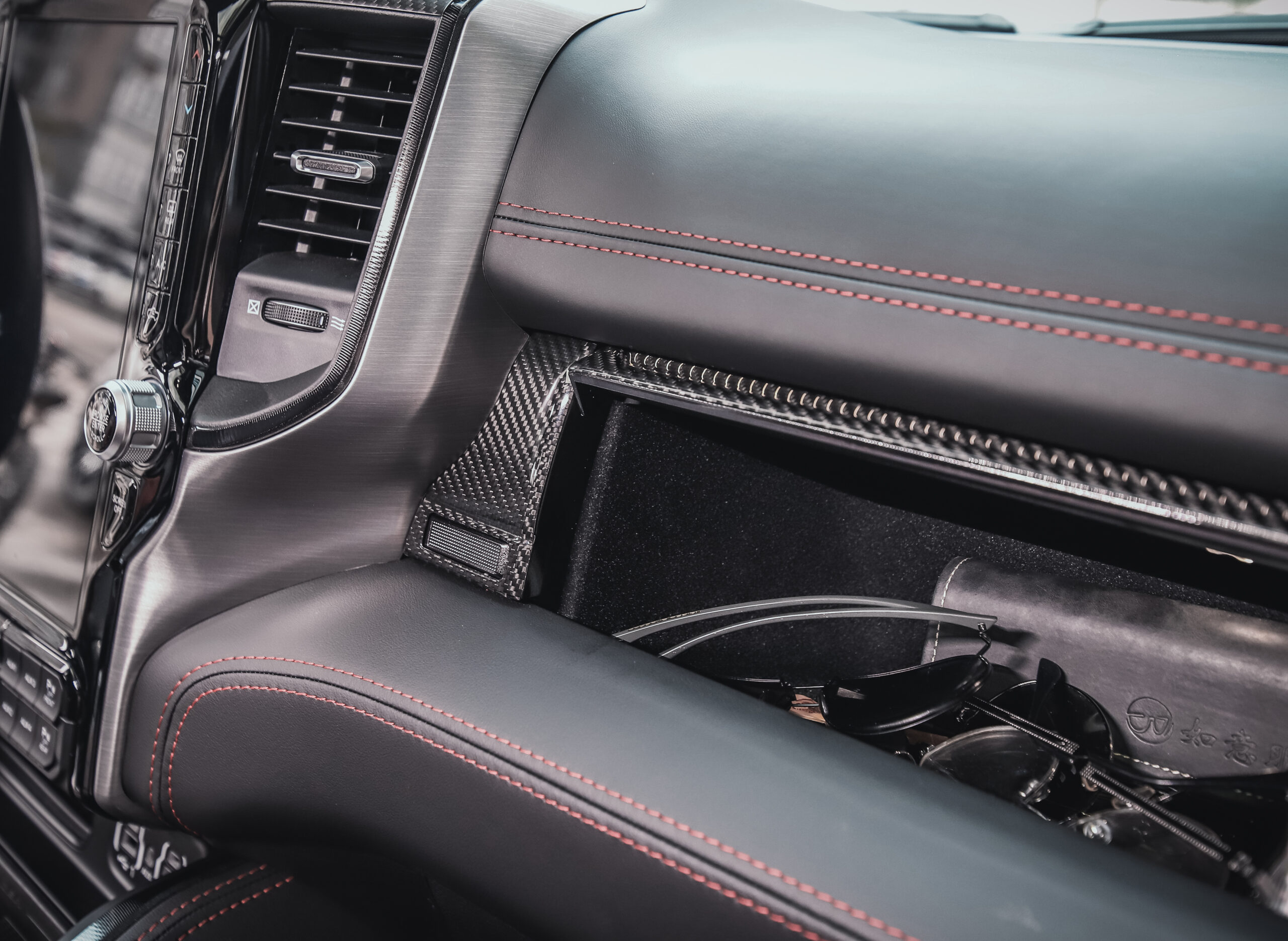 [COMPATIBILITY] JHO Carbon Fiber Passenger Side Glove Box Trim Panel for 2022-2023 Dodge Ram TRX