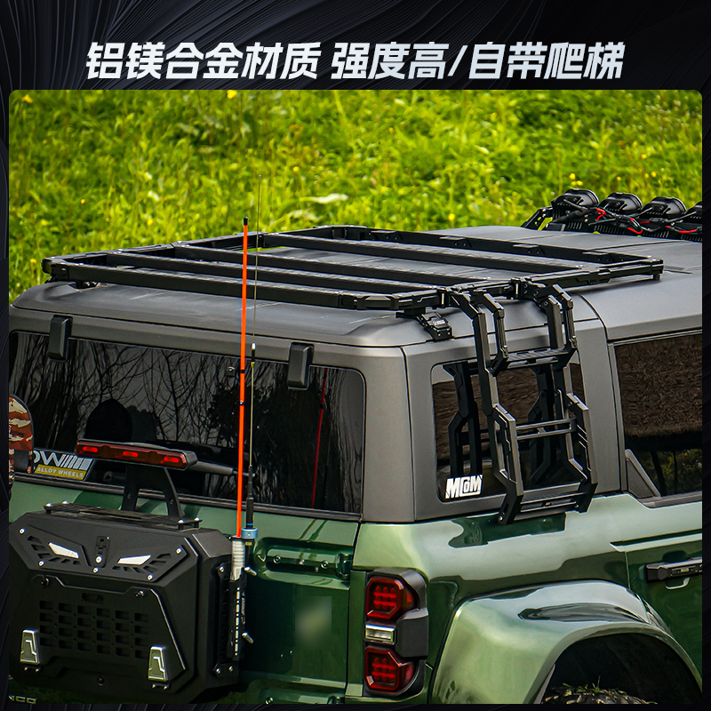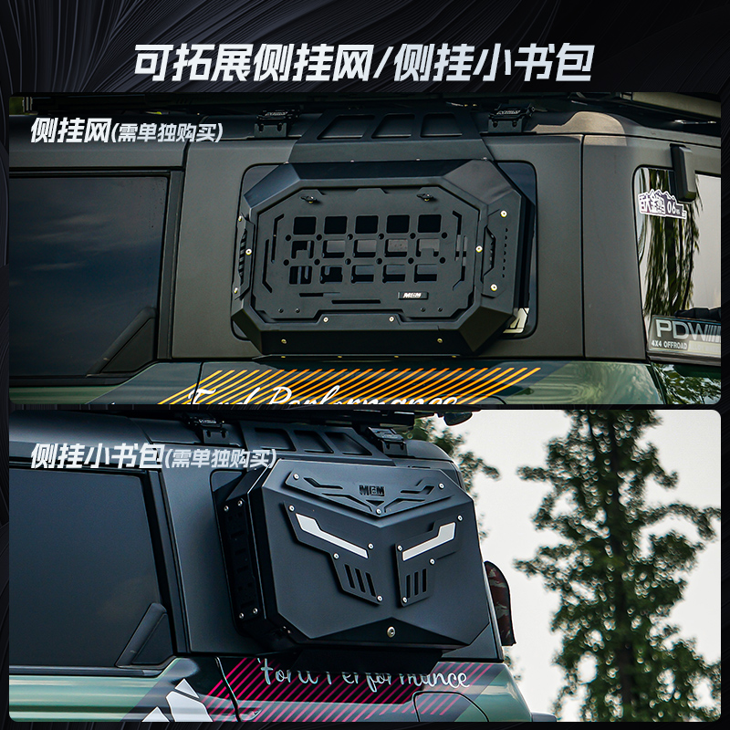 Integrated Accessory Mounts:Equipped with dedicated mounting points for a side climbing ladder and side cargo net/saddle bag, optimizing storage versatility and accessibility for rooftop accessories.