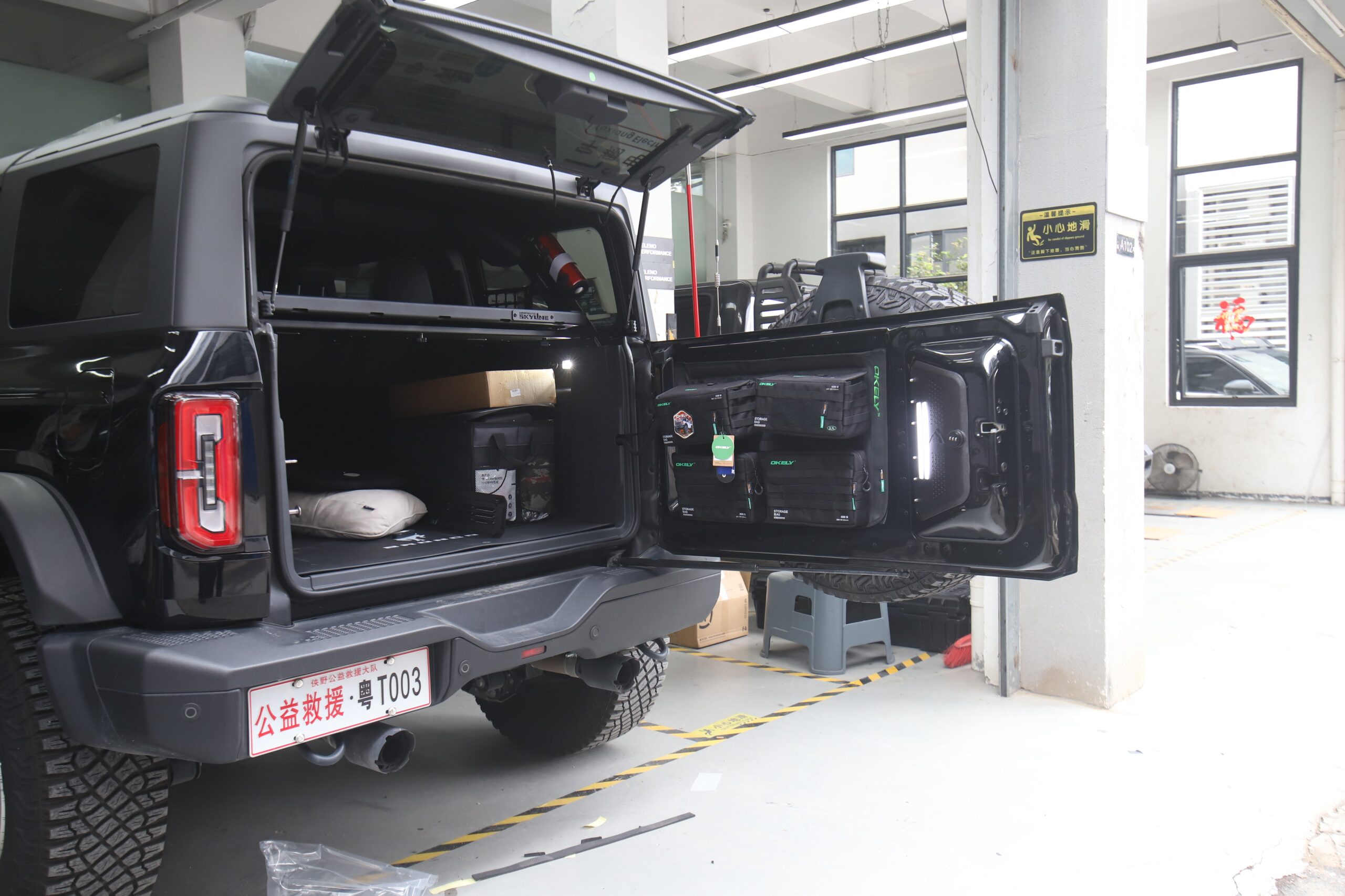 LARGE CAPACITY POUCHES:Includes four durable pouches (2×3.7L, 2×2.7L) to securely store tools, recovery gear, and personal items, maximizing tailgate storage space.