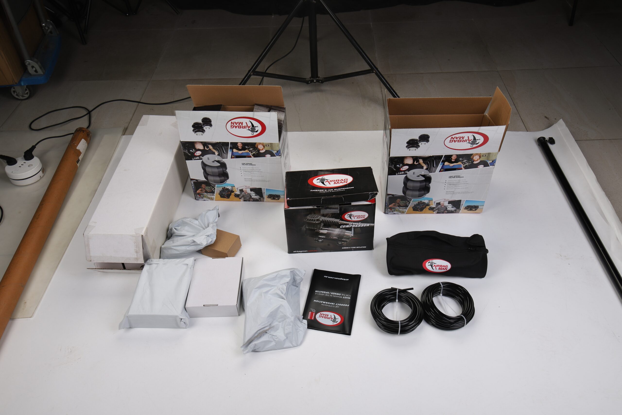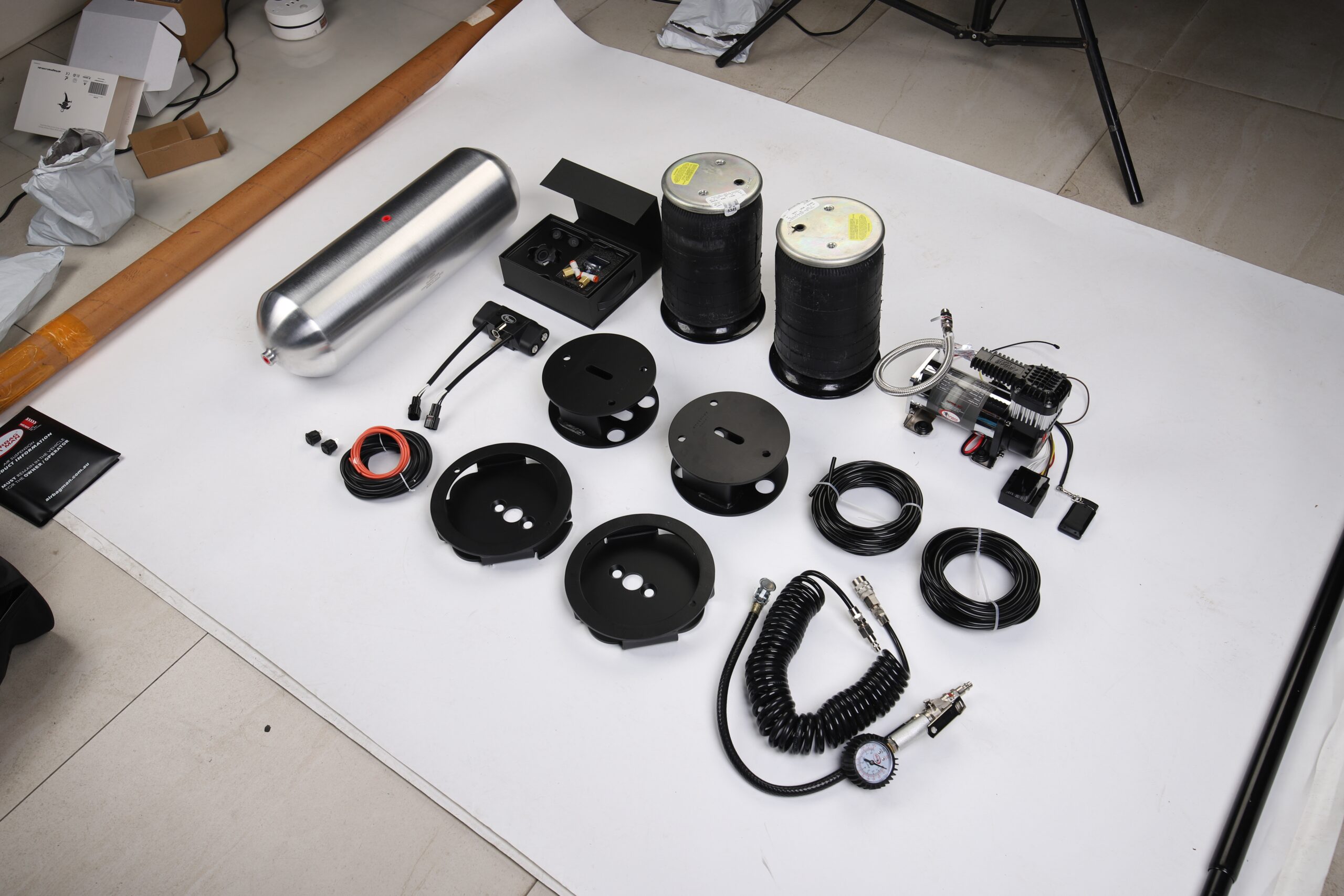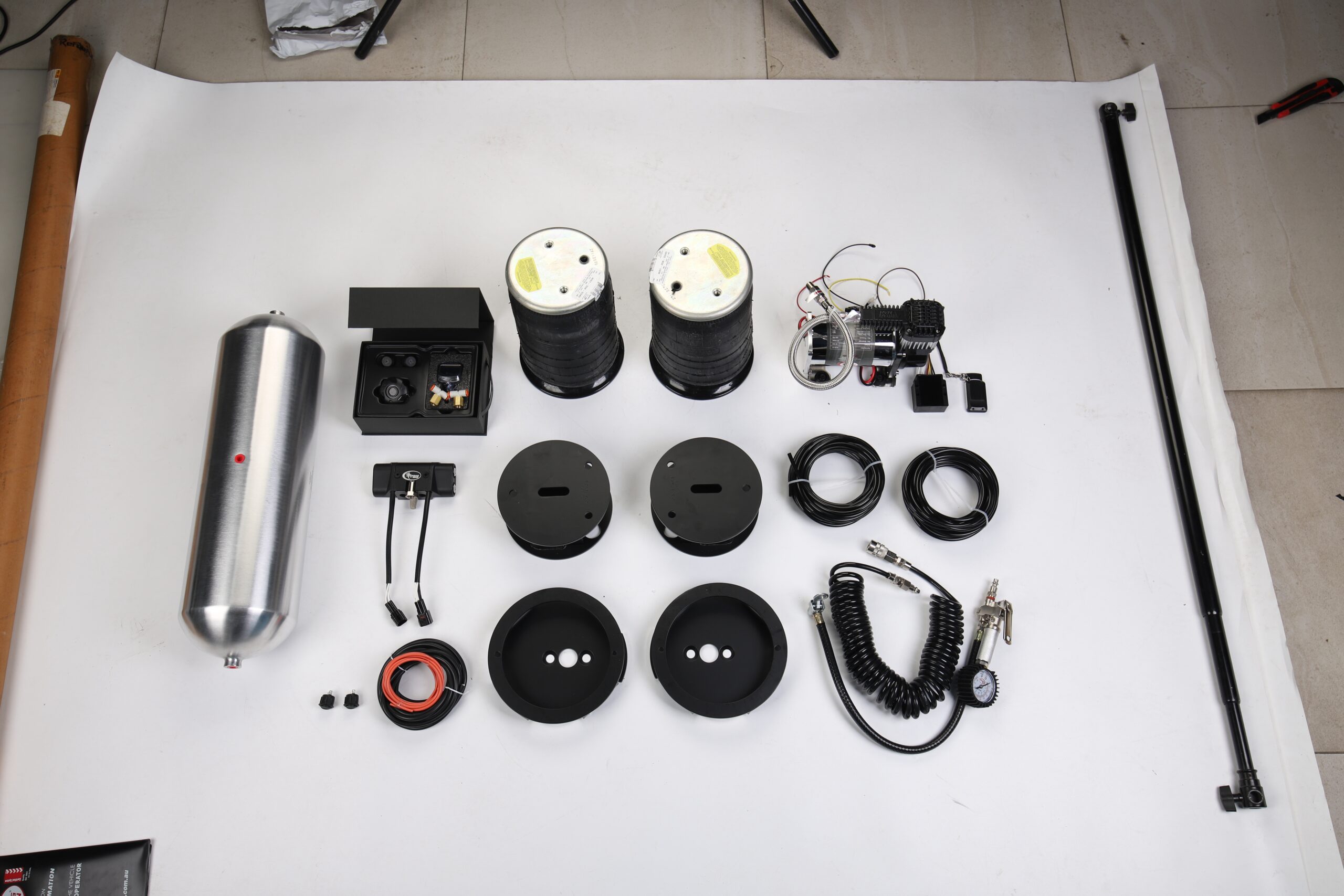 Feature: Fully adjustable air springs to level your vehicle when towing or hauling a heavy load for a safe comfortable ride