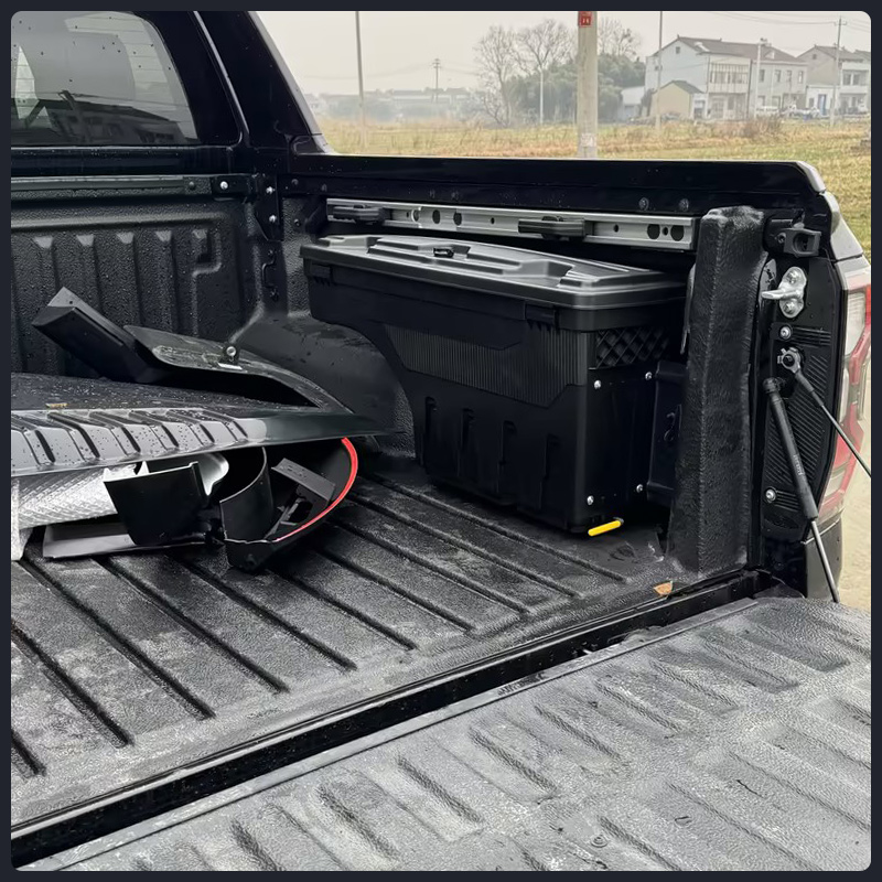 Spacious Capacity: Large storage space holds tools, outdoor gear, and truck accessories for 2023-2024 Ford Ranger’s truck bed.